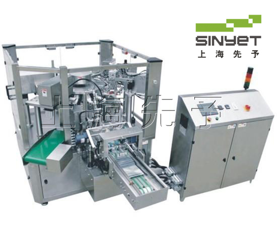 工藝六工位給袋式包裝機:1.上袋 2.打印生產日期 3.開袋 4.下料 5.熱封 6.整形及輸出; 八工位給袋式包裝機:1.上袋 2.打印生產日期 3.開袋 4.下料 5.下料 6.捅料或振邊 7.熱封 8.整形及輸出; 1、上袋:袋子用上取下送袋方式,送到機夾,無袋預警,減少用人及勞動強度; 2、打印生產日期:色帶檢測,色帶用完停機報警,觸摸屏顯示,保證包裝袋正常打碼; 3、打開袋子:開袋檢測,不開袋不落料,保障物料不損失; 4、填充物料:檢測,物料不填充、熱封不封口,保證不浪費袋子; 5、熱封封口:溫度異常報警,保證封口質量; 6、冷卻整形、出料:保證封口美觀。