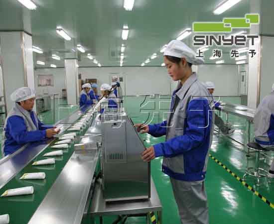 功能化妝品生產線性能及特點: 1、攪拌采用無級變頻調速,使攪拌線速度在0-150m/min內任意調節,滿足不同工藝要求; 2、先進的均質機,采用美國ROSS公司技術,結構獨特,效率超群; 3、凡物料接觸部分均采用進口不銹鋼材料,容器內表面鏡面拋光300EMSH,符合GMP要求; 4、真空吸料,真空脫泡,整個工藝在真空狀態下完成,無細菌污染; 5、造型美觀大方,外觀采用特殊拋光技術,光澤如境,更顯設備豪華名貴。